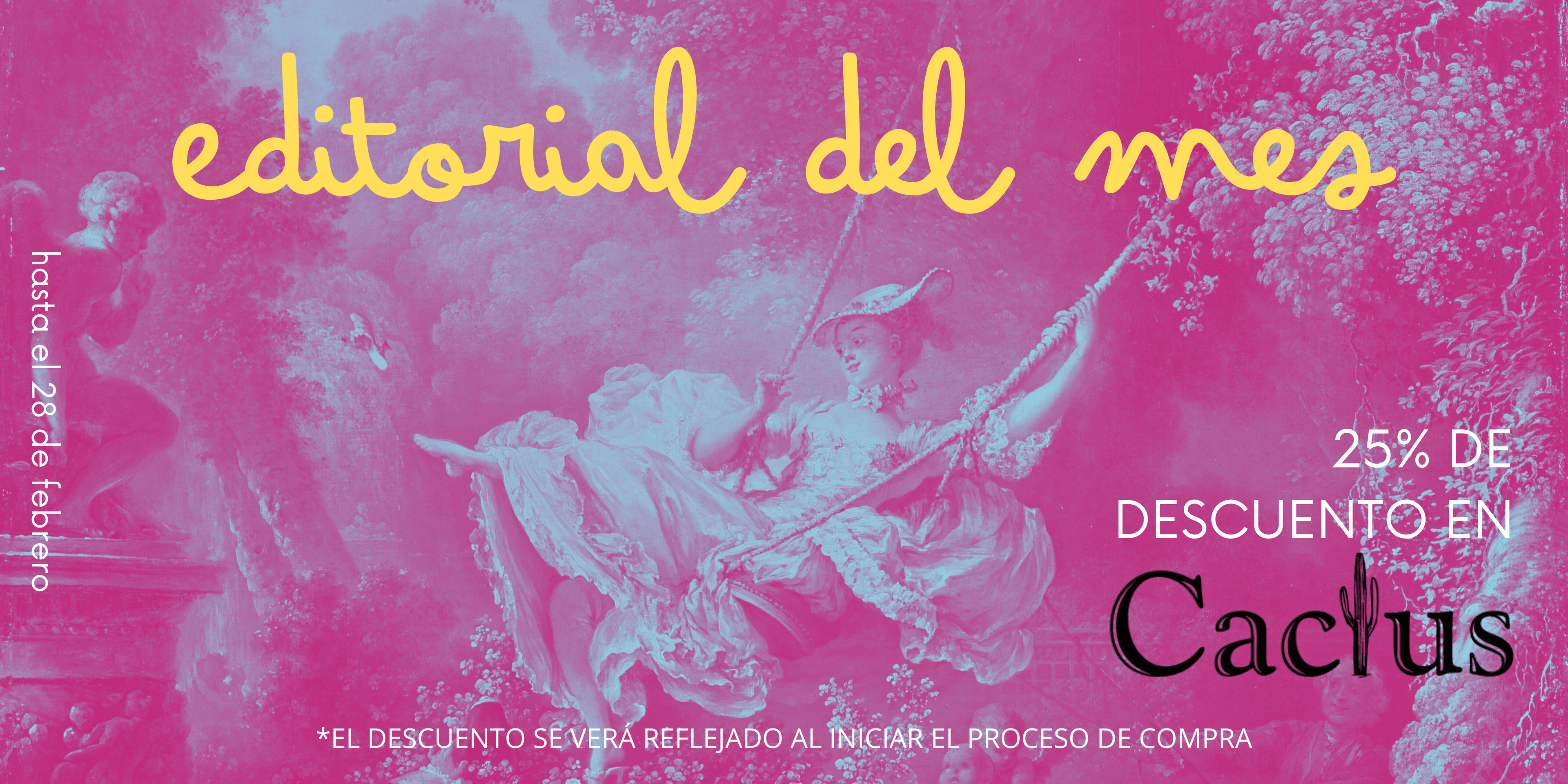 25% de descuento en EDITORIAL CACTUS. Valido del 2 al 28 de febrero de 2026 en tienda física y virtual. (el descuento se verá reflejado en la pasarela de pagos).