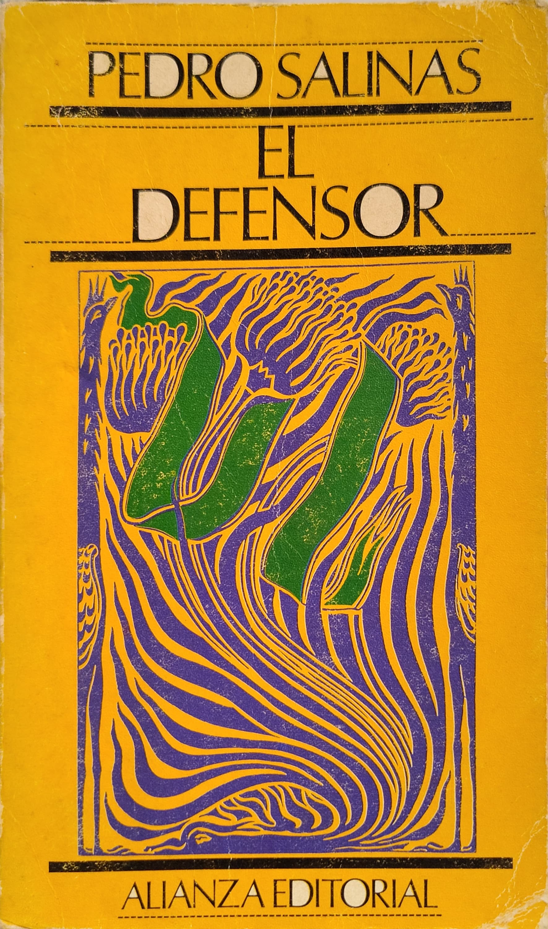 Aunque la lírica de Pedro Salinas sea la parte más conocida y estimada de su obra, los escritos de crítica literaria y ensayísticos del gran poeta le acreditan también como un extraordinario y agudo prosista. El defensor es una colección de cinco ensayos escritos durante su exilio puertorriqueño, entre 1942 y 1946. Tienen en común «la preocupación por el riesgo en que se ven hoy día algunas formas tradicionales de la vida del espíritu». En concreto, estos ensayos son una defensa de la carta y de la correspondencia epistolar como manifestación de recogimiento y meditación, de la lectura fértil y reposada, de la capacidad creadora de las minorías literarias, de los viejos analfabetos frente a los neoanalfabetos que han renunciado por voluntad propia, parcial o totalmente, a su capacidad de lectura; finalmente, del lenguaje, instrumento prodigioso para la expresión del propio ser y la convivencia con el prójimo. Como señala Juan Marichal en el prólogo de El defensor, «Salinas no es un ensayista introspectivo o egoísta. Sus ensayos están abiertos hacia la vida de su tiempo, de su mundo histórico. Son ensayos de espectador, o, más precisamente, de veedor y de oidor de la vida coetánea: porque en sus ensayos Salinas da rienda suelta a sus entusiasmos ¡y qué capacidad la suya para la sanísima admiración!, pero también sopesa y condena muchas actitudes y muchas injusticias».