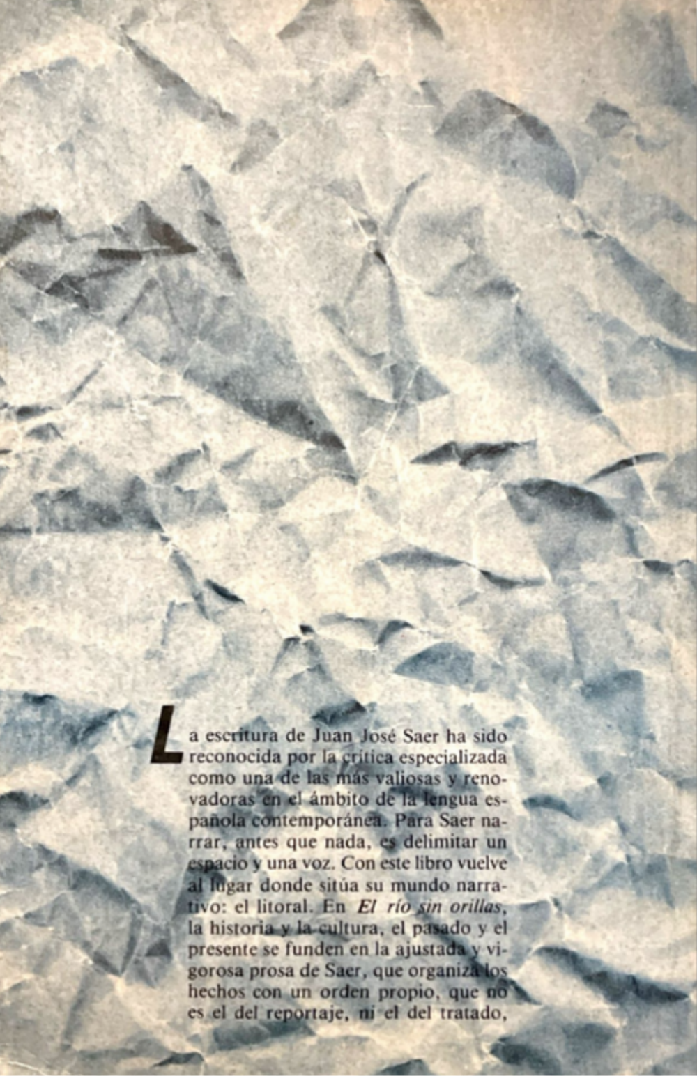 La escritura de Juan José Saer ha sido reconocida por la crítica especializada como una de las más valiosas y renovadoreas en el ámbito de la lengua española contemporánea. Para Saer narrar, antes que nada, es delimitar un espacio y una voz. Con este libro vuelve al lugar donde sitúa su mundo narrativo: el litoral. El río sin orillas, la historia y la cultura, el pasado y el presente se funden en la ajustada y vigorosa prosa de Saer, que organiza los hechos con un orden propio, que no es el del reportaje, ni el del tratado.