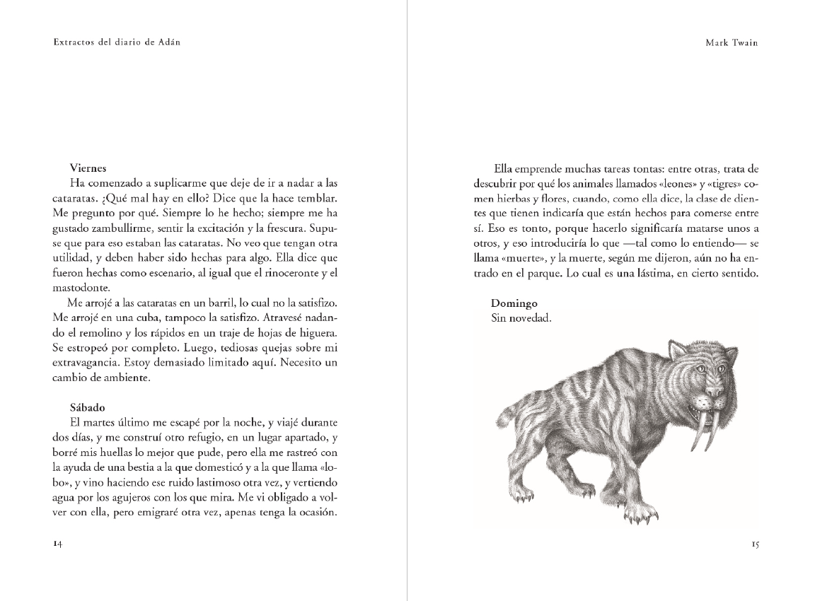 Desde su publicación original en 1906, Los diarios de Adán y Eva no han perdido vigencia. Su pervivencia radica en una poderosa combinación de humor y ternura: una gracia construida a base de finas ironías, un candor que recrea las más primitivas ingenuidades.