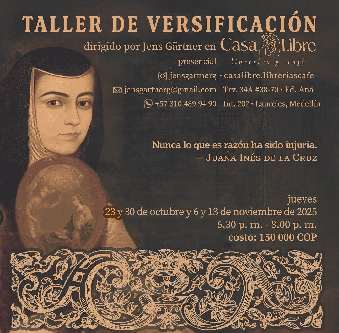 Y este taller de versificación, también terminando este mes y también en la @casalibre.libreriascafe. Leeremos y escribiremos coplas, liras, décimas, sonetos, romances, silvas y más. Leeremos santos y santas y laicos y paganos de todos los siglos. Van a aprender a escandir y a rimar, y un montón sobre las idiosincrasias de nuestros español.